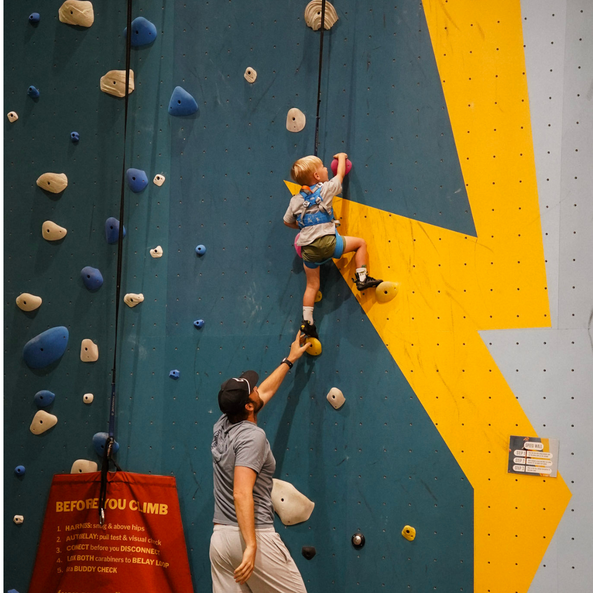Each Wednesday from 10:00–11:00am, your little one can explore movement, confidence, balance, and basic climbing skills in a playful, safe environment inside our Kids Zone. Through climbing alongside one of our trained coaches, your little one will gain coordination, strength, and bravery — all while having FUN.